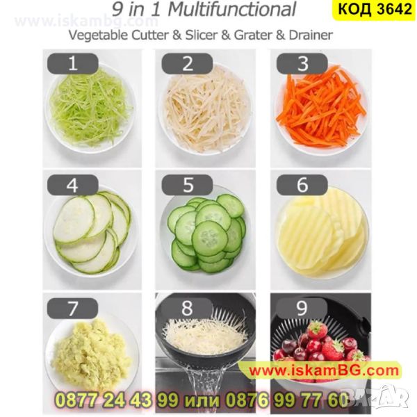 Мултифункционална купа 8в1 с подвижна цедка и ренде - КОД 3642