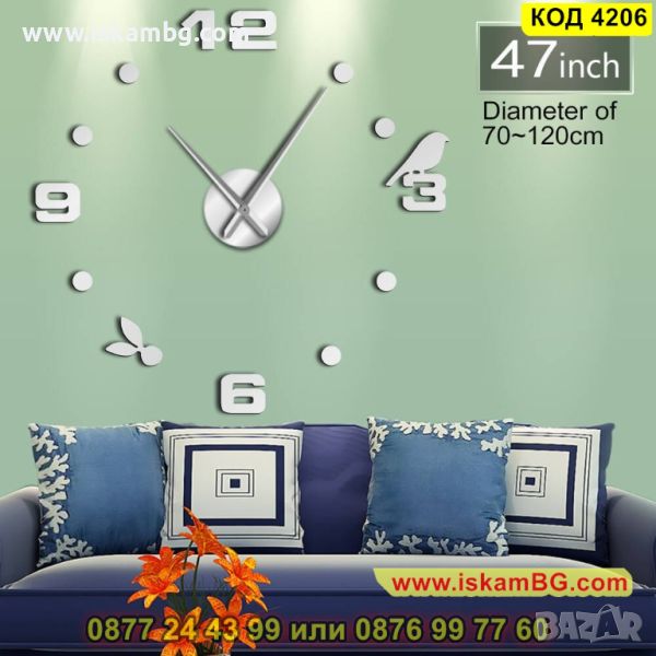 Часовникът ще се впише идеално както в модерен, така и в класически интериор. Числата са изработени от самозалепваща се EVA пяна и акрил с огледален ефект, а стрелките и механизма са метални. Елементите на часовника са с огледален ефект.