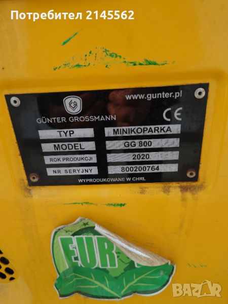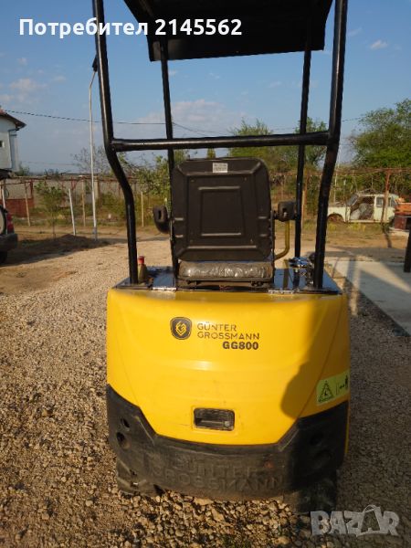 мини багер! Модел GG 800 на Gunter Grossmann ! В перфектно състояние на 53 мото часа! Пълен инвентар кофи - 3 броя,вила и оригинален бързосменник! С багерчето почти не е работено, въпреки това е обслужвано от сервиз!Всичко е още с найлоните,видно на снимките!