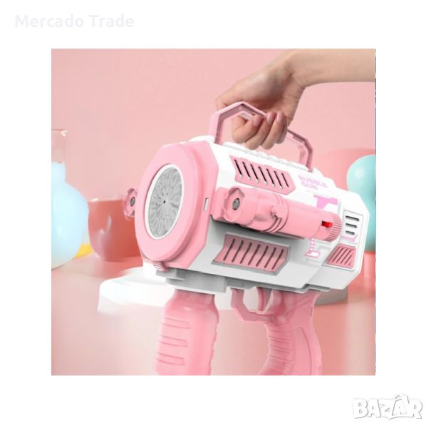 Пистолет за сапунени балони Mercado Trade, С резервоар, LED светлина, Розов → Обява 45324782
