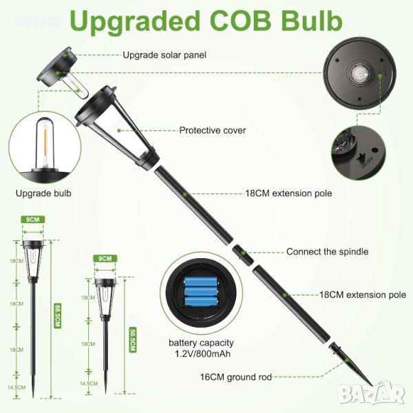 „Quntis Solar Ground Lights“ са изработени от издръжлив ABS материал, което ги прави дълготрайни и устойчиви на атмосферни влияния с IP64 водоустойчив рейтинг. Те могат да издържат на дъжд, сняг, вятър и топлина, идеални за външна среда. Тези светлини разполагат с функция за автоматично включване/изключване, включвайки се при здрач и изключвайки призори, осигурявайки 8-10 часа осветеност след зареждане в продължение на 6-8 часа на пряка слънчева светлина. Инсталирането е лесно, без да е необходимо окабеляване - просто сглобете и поставете в земята. Уникалният дизайн с обърнат триъгълник с регулируема височина предлага разнообразно осветление и декоративни опции, подобрявайки визуалната привлекателност и яркостта на вашите външни пространства. Използвайки ефективни поликристални силициеви соларни панели с 25% коефициент на преобразуване, тези светлини са енергоспестяващи и рентабилни. Те са идеални за осветяване и декориране на градини, пътеки, вътрешни дворове и много други, въпреки че оптималната производителност изисква поставяне на слънчеви места.