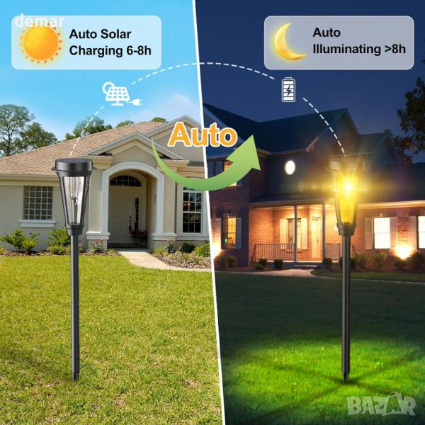 Quntis 4 броя соларни градински светлини за пътеки, IP64 водоустойчиви, топло бяло