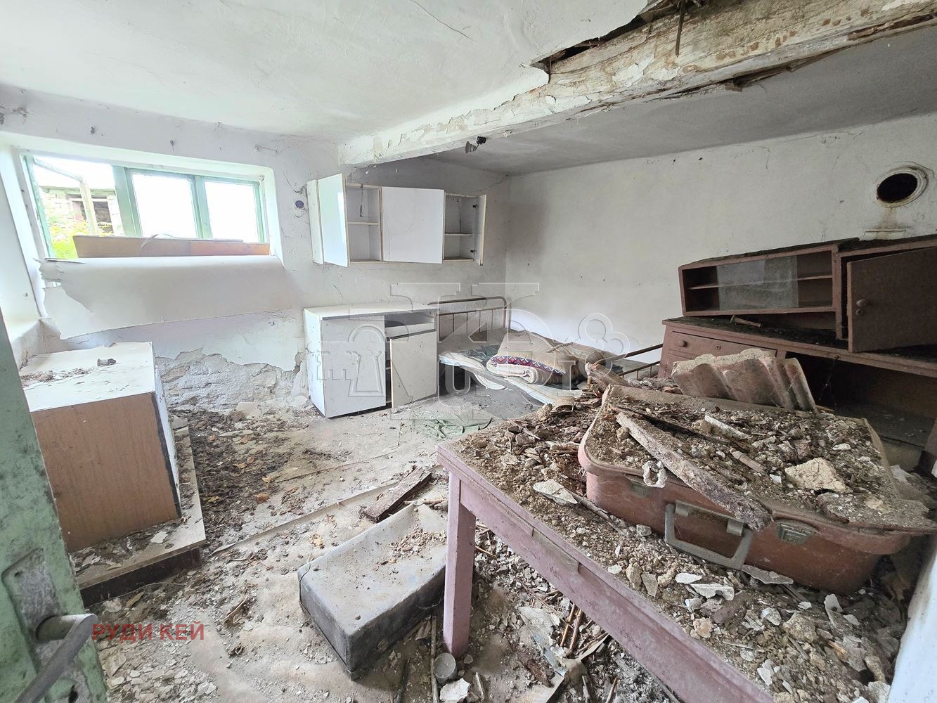 Къщата е изградена с камък и тухли, в лошо състояние, за основен ремонт.