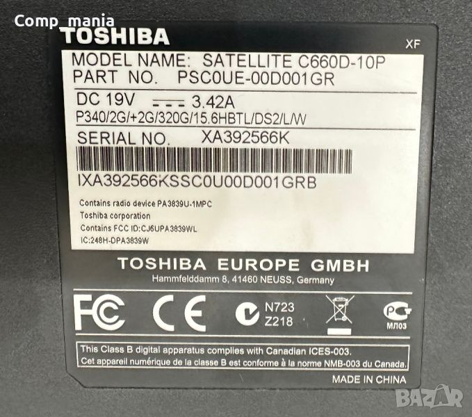 Лаптоп Toshiba SATELLiTE C660D-10P цял за части