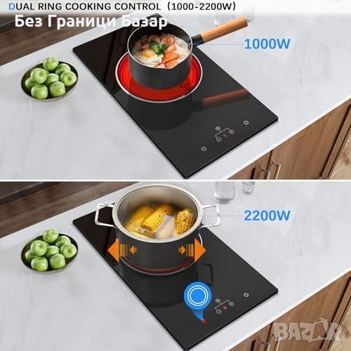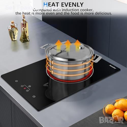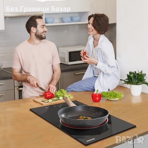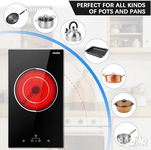 Нов Електрически Керамичен Плот Jessier 30 см - Двойни Зони, 9 Нива на Мощност