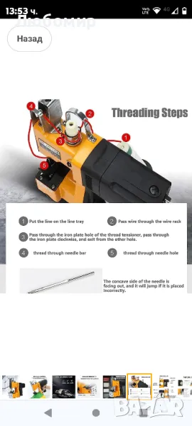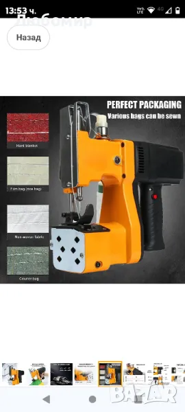 Приложение: За шиене на чували, хартиени торби? торба за брашно, тъкана торба и др.