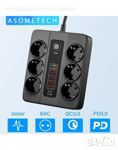 Предлагаме Ви един изключително ефективен и практичен разклонител, който притежава 3000W мощност. С помощта на 5 USB порта и 1 Type-C порта, който разклонителят има Вие ще можете да заредите различни уреди, като лаптопи таблет, смартфони, Bluetooth слушалки и други USB- и Type-C- устройства, които са съвместими. Универсалният разклонител има и QC3.0 технология за бързо зареждане, с чиято помощ ще зареждате по – бързо и ефективно съвместими устройства. Друг плюс, който нашия разклонител има е, че има вградена защита при пренапрежение, прегряване или късо съединение. Осигурете си безопасност за Вас и уредите Ви, използвайки този разклонител. Освен това, разклонителят е компактен и лесно може да се взима навсякъде с Вас – офис, пътуване. Притежава индикаторна светлина, която показва зареждането му и активността за ползването му. И не на последно място ще кажем, че нашият разклонител е изцяло съвместим с всички видове лаптопи, таблети, смартфони, игрови конзоли, фотоапарати, Bluetooth слушалки и други устройства. Също така, поддържа стандартните USB и Type-C кабели.