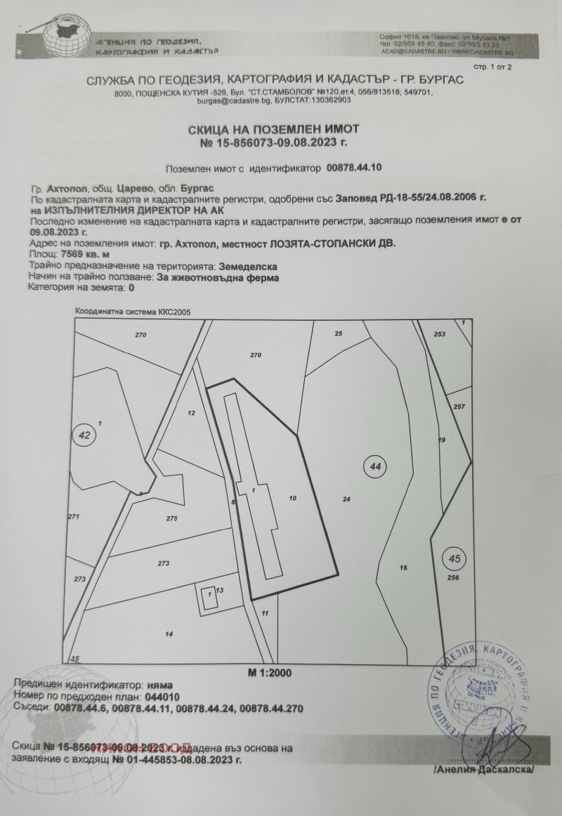 Продава се застроен земеделски имот с площ 7569кв.м, находящ се в стопански двор 'Депата' в землището на гр.Ахтопол, заедно с построената в парцела масивна стопанска постройка за отглеждане на свине.Парцелът се намира в местността Лозята.В парцела има ел.енергия и вода.Има възможност за смяна на предназначението на парцела в урегулиран поземлен имот.