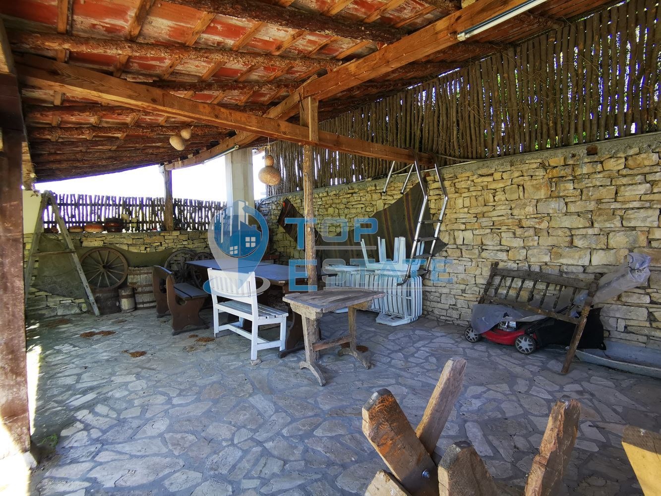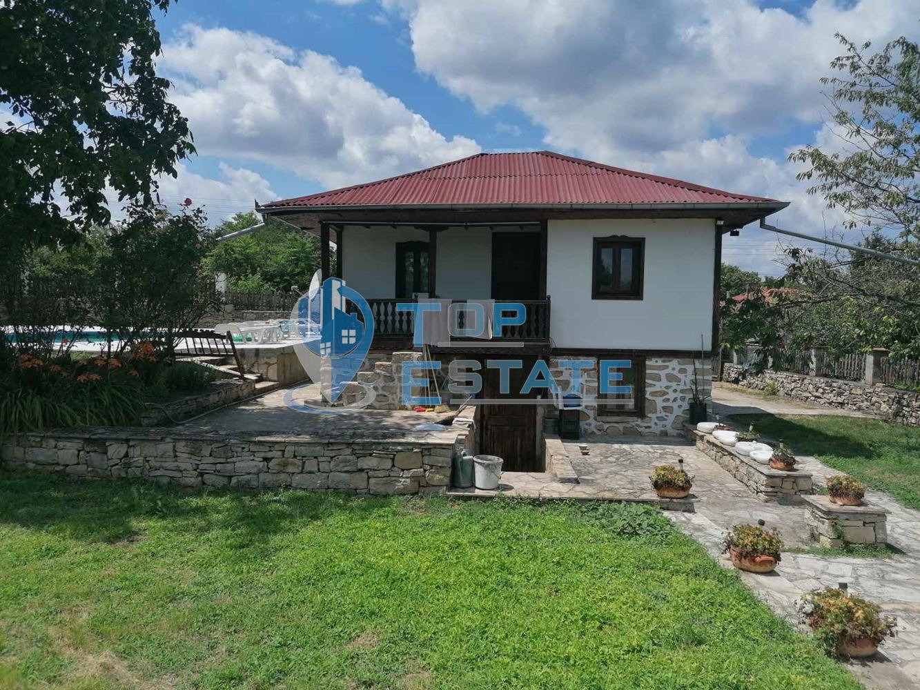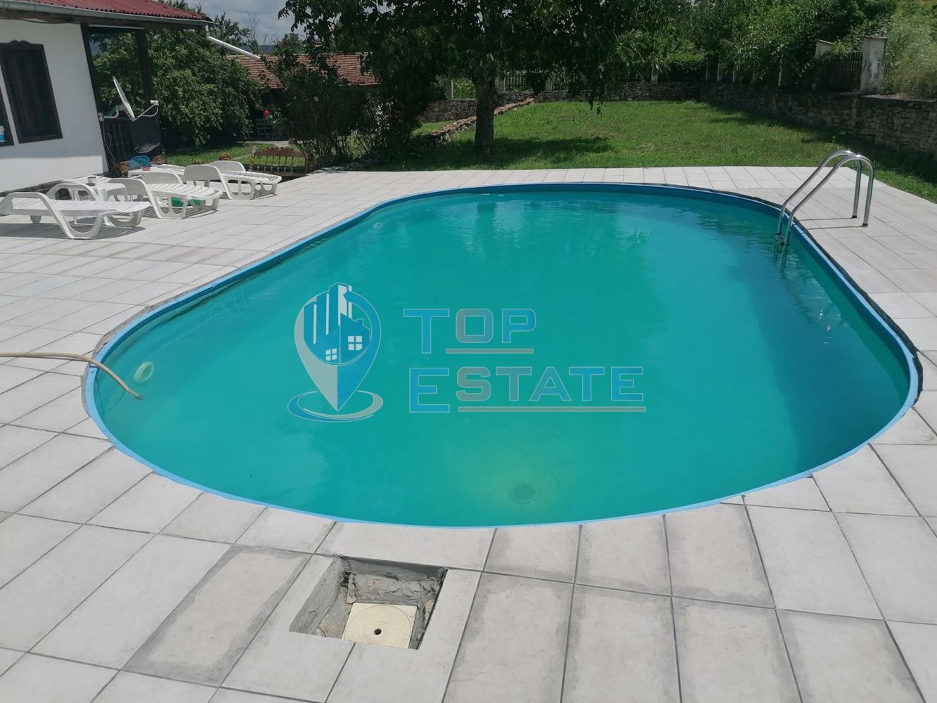 камина с водна риза и радиатори във всички стаи. Покривът на имота е реновиран, а площадката покрай басейна е подновена, с излята бетонна плоча и покритие с плочки. Номер на оферта 2394. We speak English and German.