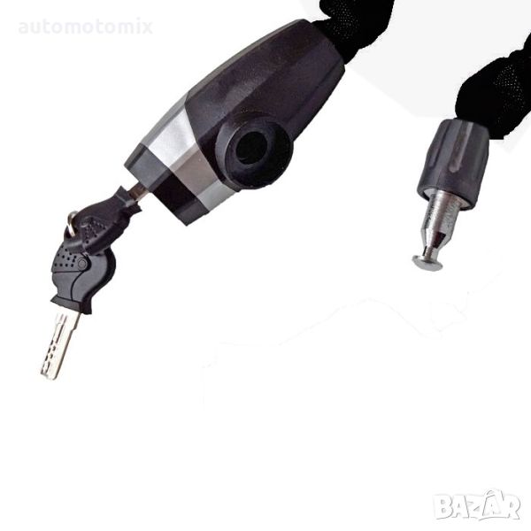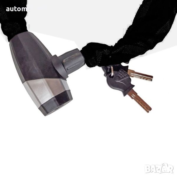 Верига на халки изработени от закалена стомана, бравата е осигурена със защитно покритие срещу надраскване.