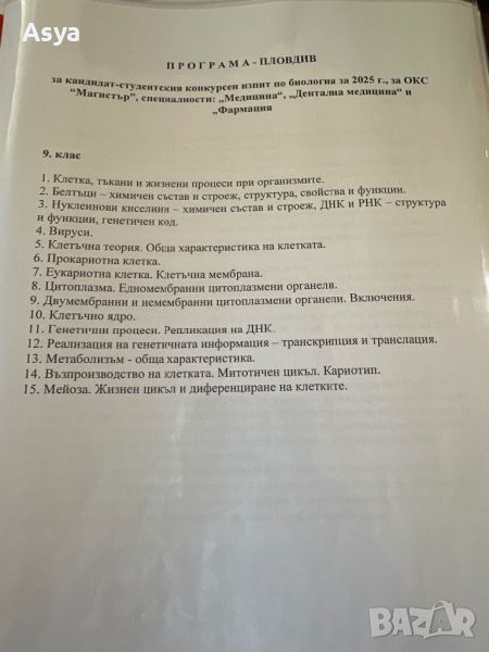 Теми за кандидат-стидентски изпит в МУ Пловдив → Обява 45336534