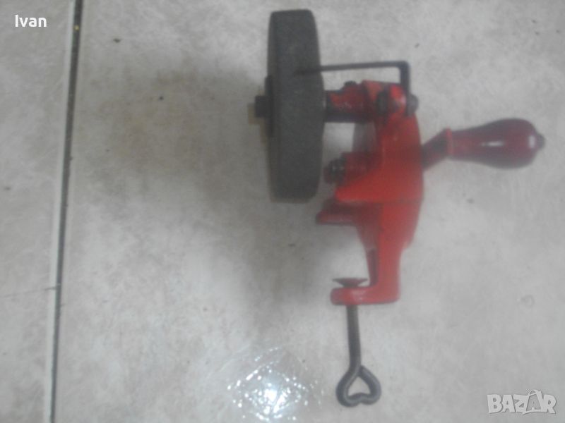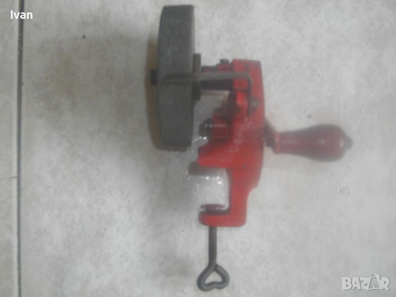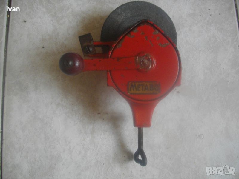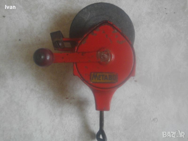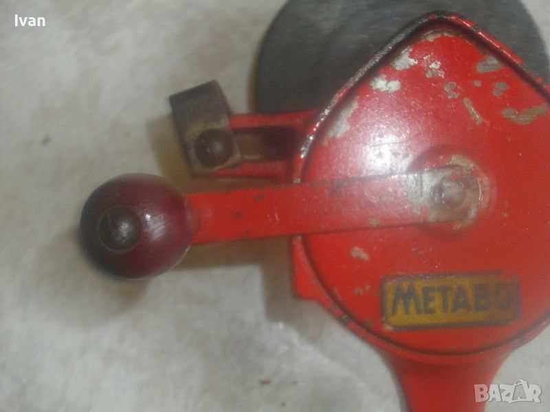 ОПИСАНИЕ на ръчен шмиргел МЕТАБО. Цена 79 лв. Инструмнтът в предлагания вид е със забележка по работно състояние - въртока държка не върти забчатките вътре и излиза от корпуса. Марка на шмиргела METABO. Професионален. Запазен външен вид. Камък оригинален диск шлифовъчен сив универсална зъърненост - ф 85 мм. Ширина на шмиргела 20 мм. Височина - 185 мм, с отворена стяга. Стяга захват до 30 мм. Метален масивен корпус. Тегло на шмиргела - 1,0 кг.