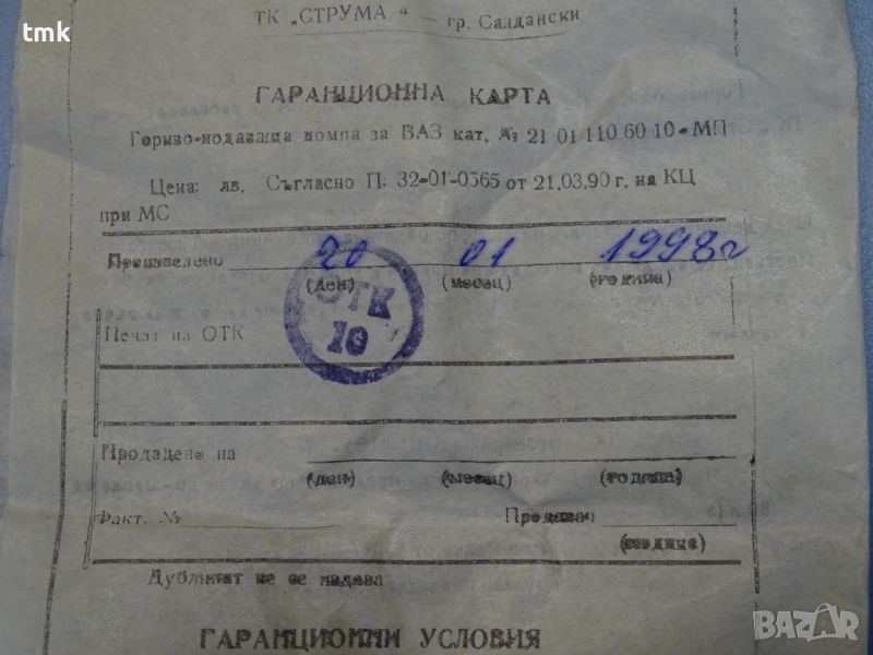 Предлагаме нова оригинална българска гориво-подаваща помпа за леки автомобили ВАЗ, производство на технологичен комбинат "Струма" гр.Сандански.