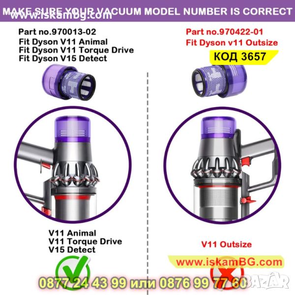 Филтъра е подходящ за Следните модели прахосмукачки Dyson V11 Cyclone Animal / Animal Plus / Absolute / Absolute Pro / Torque Drive / Total Clean, както и за Dyson SV14 и Dyson V15