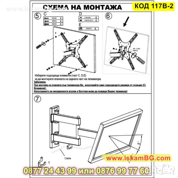 Ъгъл на наклона на телевизора: 15 градуса;
