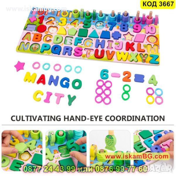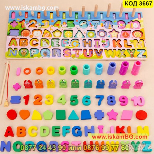 Монтесори дървена дъска 5в1 - игра за деца - КОД 3667