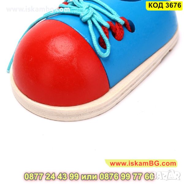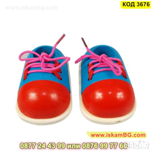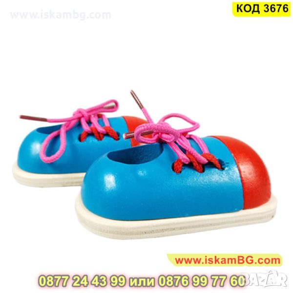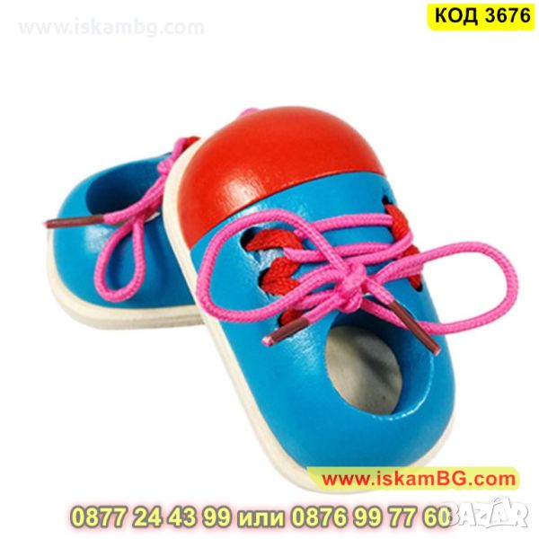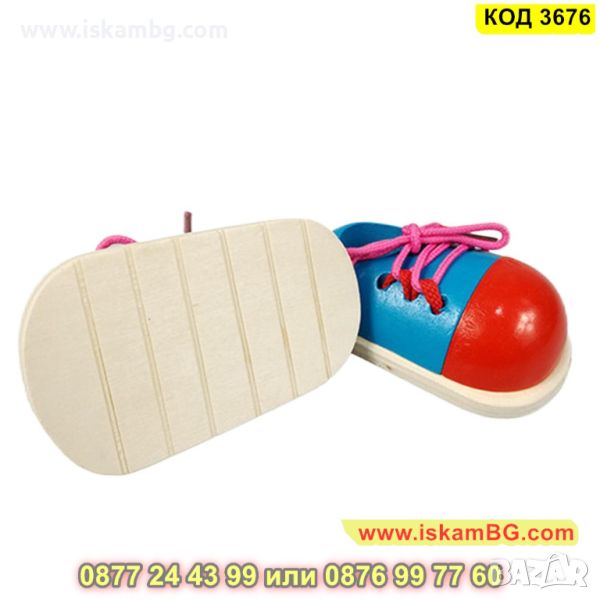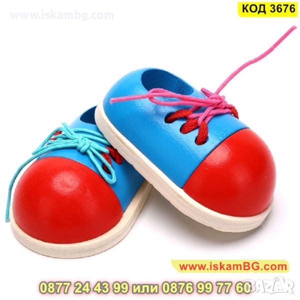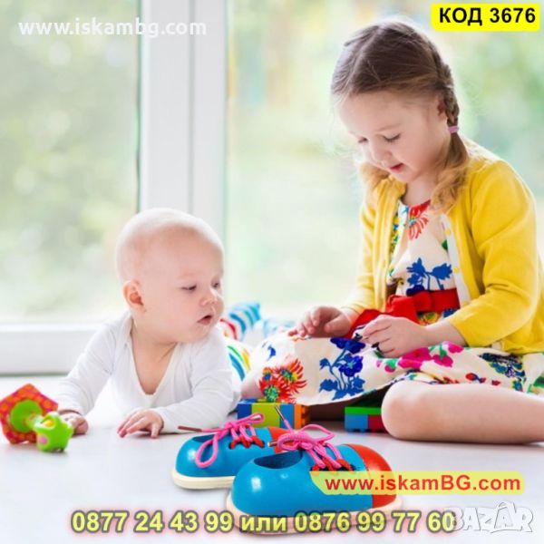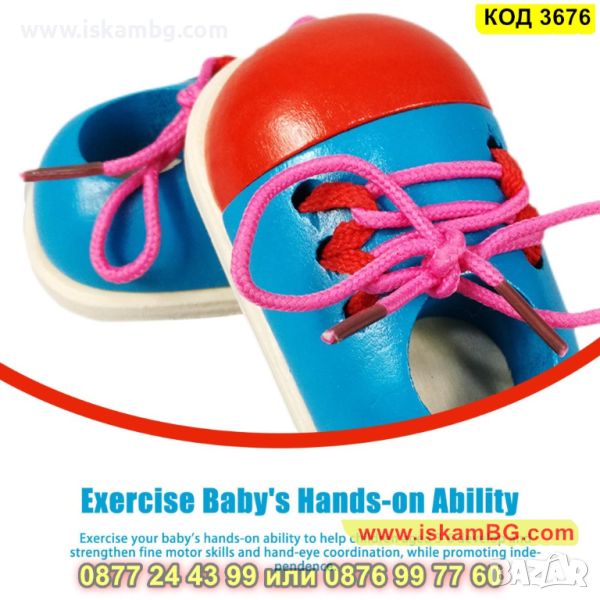 Заниманията с малки дървени обувки с връзки за връзване - комплект 2 броя развиват координацията между пръстите, координацията между очите и ръцете, фината моторика, както и търпението и концентрацията у децата.