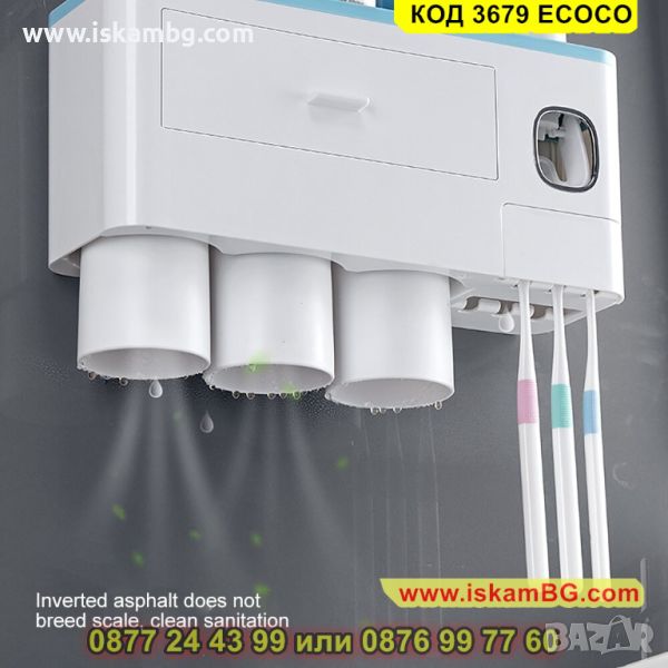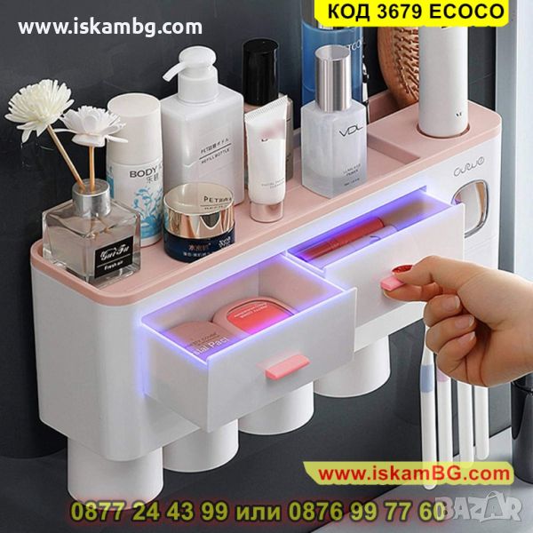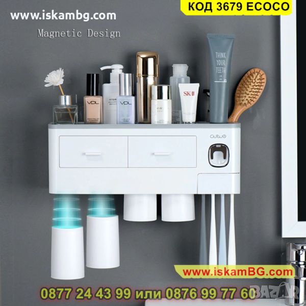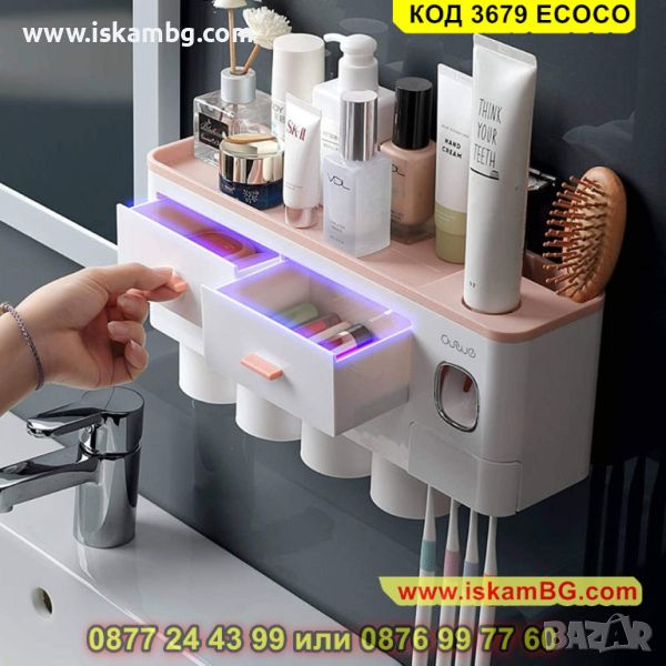 Самозалепваща поставка за четки и паста за зъби с магнитни чашки - КОД 3679 ECOCO