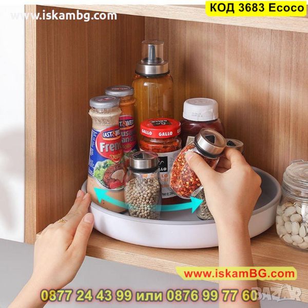 И не е само това, мултифункционалността на този кухненски помощник достига и до това, че благодарение на опцията си да се завърта на 360° за Вас повече няма да има недостъпни места! Издържливостта му пък ще Ви позволи да подредите на него и по-тежките шишета или буркани.