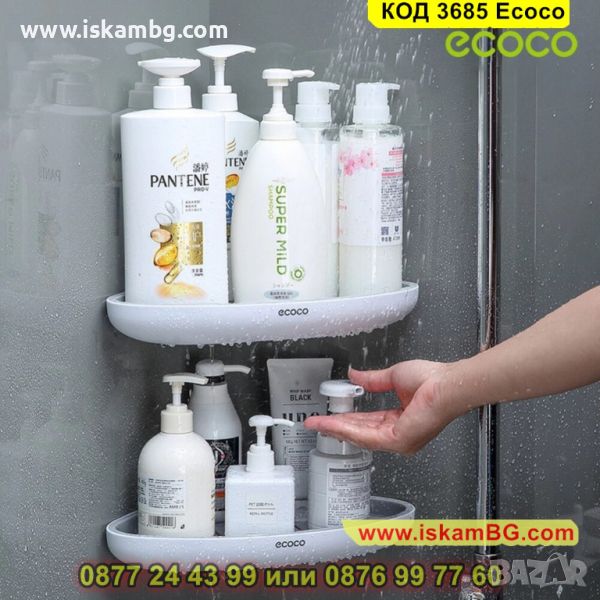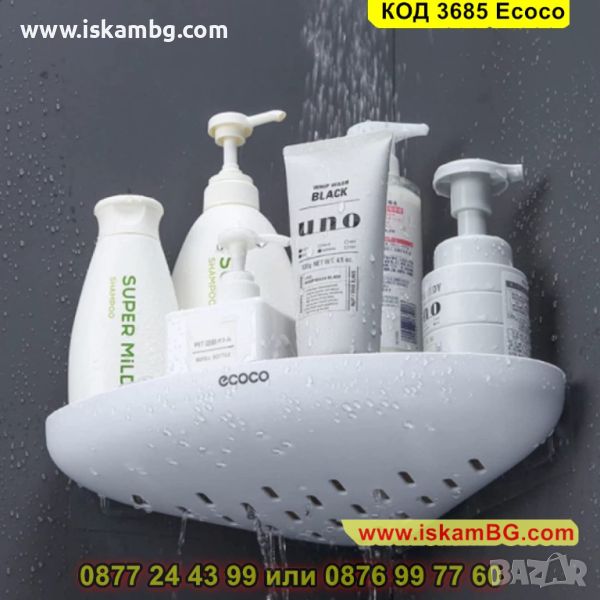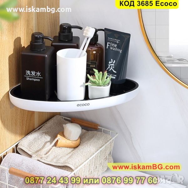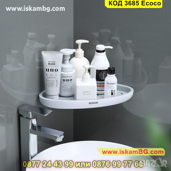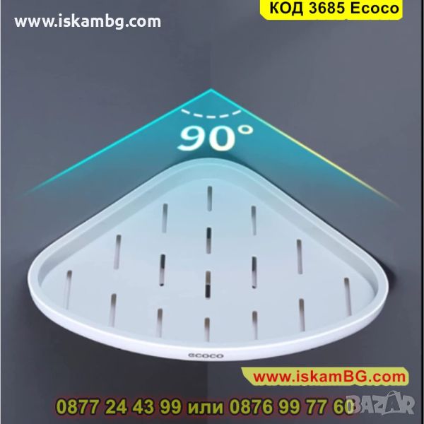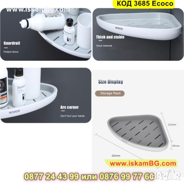 Самозалепващата се ъглова етажерка за баня се поставя лесно без да е необходимо излишно дупчене. Бордът, който има предпазва предметите, които са поставени на нея от падане. Стилни цветове, които подхождат на всеки интериор.и схема е подходяща за всеки интериор. Заоблените ъгли, които ъгловата етажерка притежава ви предпазват от нараняване.