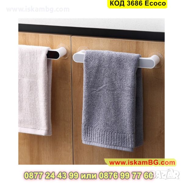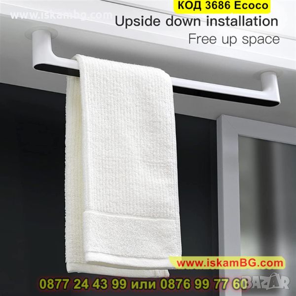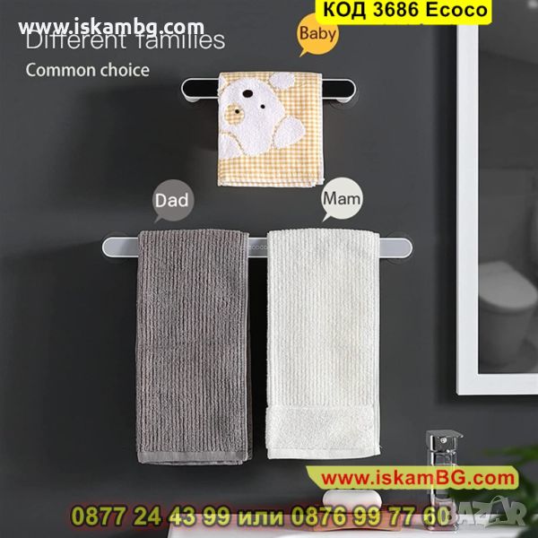 Водоустойчива стенна поставка за кърпи или хавлии за баня. Благодарение на стойката, ще имате организирана баня с елегантен дизайн. Монтира се изключително лесно без монтиране, като може да се сложи в ъглите на банята или на тавана.