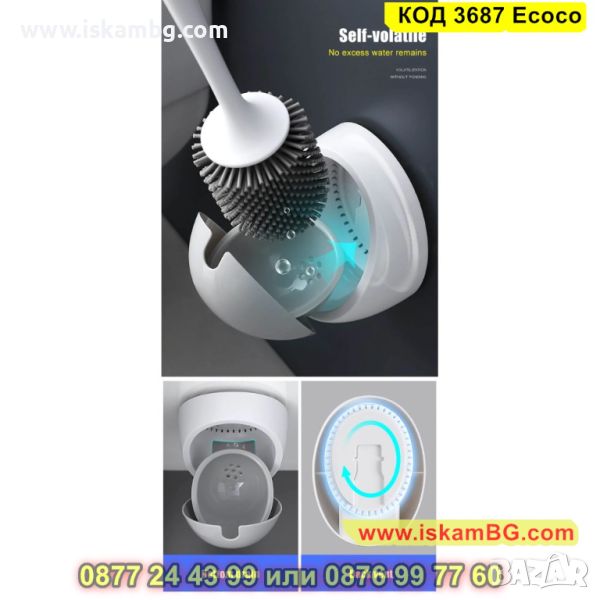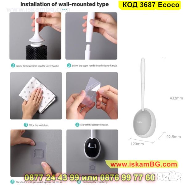 Формата на четката (яйце) ви позволява да почиствате трудно достъпните места във вашата баня. Лесно закрепване към стената без необходимост от инструменти и пробиване на стената.