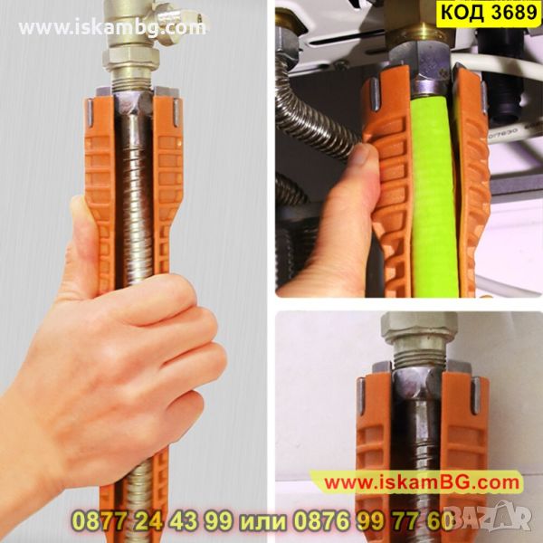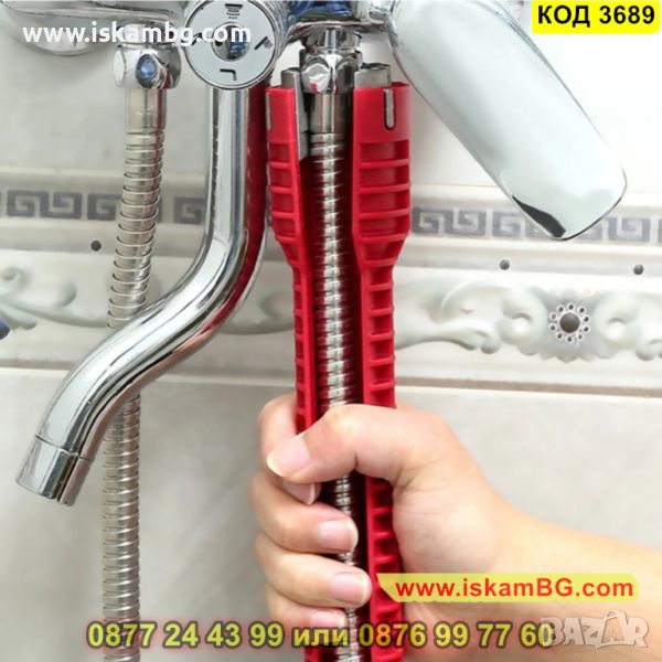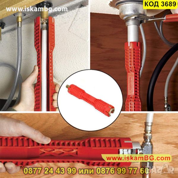 Универсален ключ за санитарни инсталации, улеснява монтажа и демонтажа на мивки, мивки, смесители, бойлери и др.