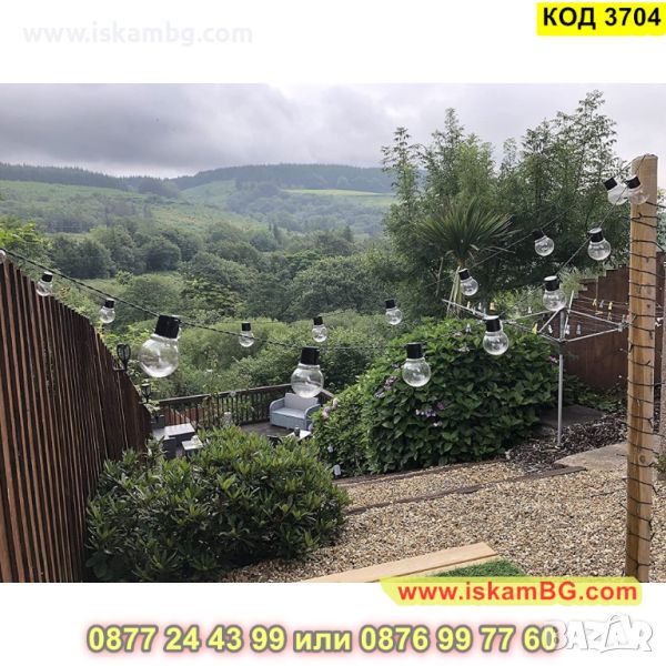 Соларни гирлянди за декорация на градина от 20 крушки с прозрачен корпус - КОД 3704