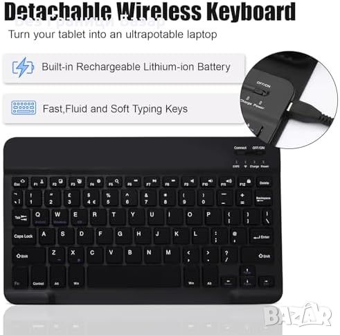 Клавиатура: Отделяща се Bluetooth клавиатура с дълготрайна батерия и опция за зареждане