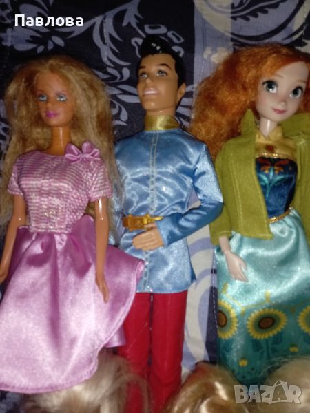 Горен ред от ляво на дясно: 1 - Барби с розова рокля - ПРОДАДЕНА! 2 - Принцът на Снежанка е продаден. 3 - Анна има оцветяване по краката (снимка 2) - 9,50 . 4 - Барби с лилава рокля. Продадена.