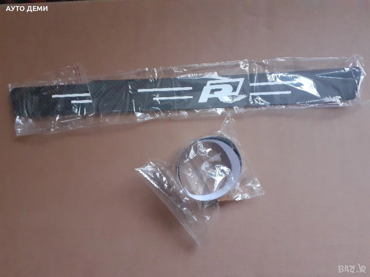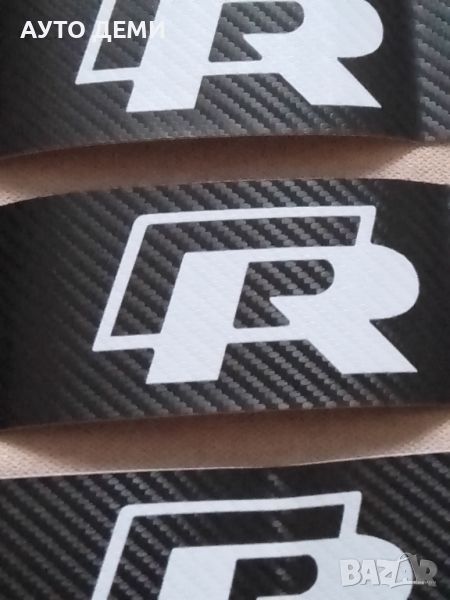 Цена за комплект от 4 броя черен карбон стикери с лого и надпис R line - 24 лв.