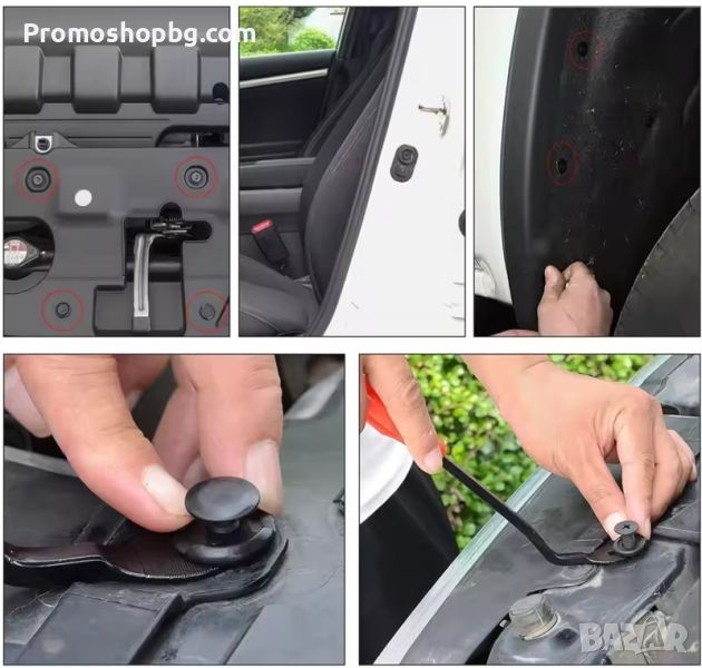 • Закрепване на елементи от тапицерията на врати, седалки и панели.