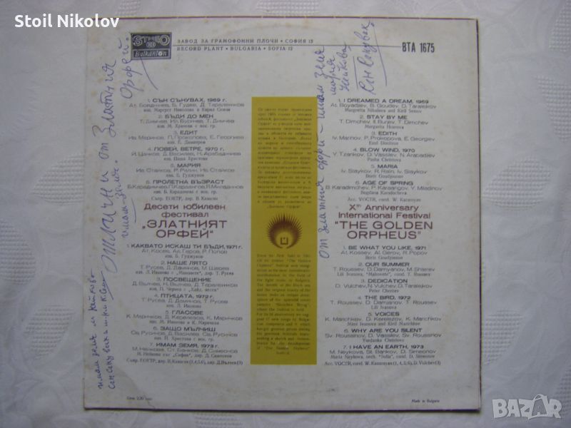 Грамофонна плоча - ВТА 1675 - Десети юбилеен фестивал Златният Орфей 1974 година - Втора плоча !!!