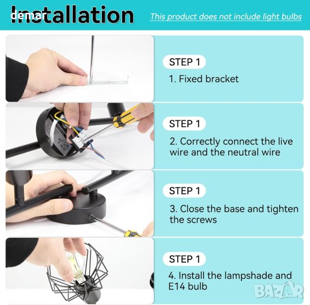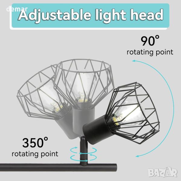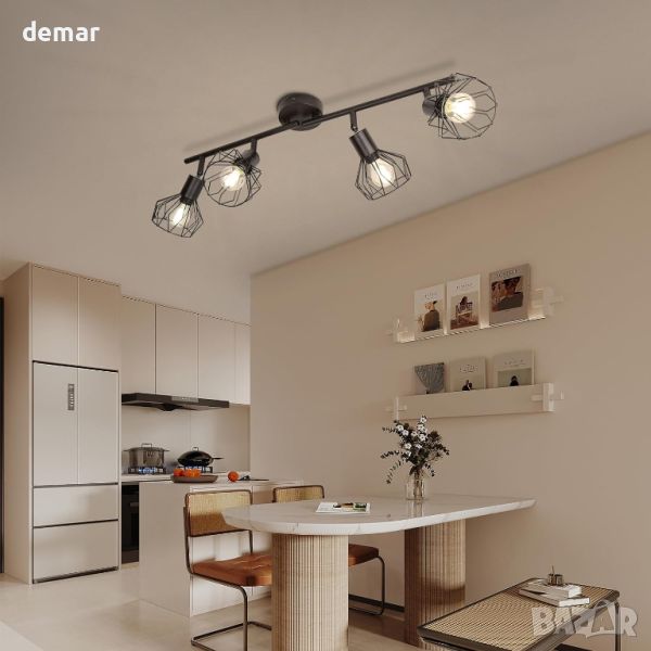 Тези многофункционални въртящи се 4-посочни прожектори са с размери 60x20x10 cm и имат дизайн с 3 светлинни глави, като всяка глава може да се върти на 350° хоризонтално и 90° вертикално. Тази гъвкавост ви позволява да персонализирате ъгъла на осветяване, за да подобрите осветеността в по-широка област. Изработени от издръжлива черна жица, която е устойчива на изкривяване, избледняване и ръжда, тези плафониери се отличават с ретро дизайн на метална клетка, който добавя елегантен щрих към всяка схема на домашно осветление. Светлините използват основа E14, съвместима с различни типове крушки, включително LED, CFL, халогенни и с нажежаема жичка, поддържащи крушки до 60 W всяка. Проектирани за дълготрайност и минимална поддръжка, тези прожектори са подходящи за различни приложения, включително кухни, дневни, спални, коридори и офиси, осигурявайки както функционални, така и стилни решения за осветление.