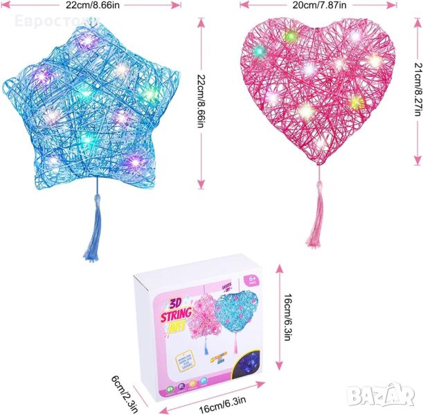 Комплекти за ръкоделие „Направи си сам“ за деца, включително 4 балона, 2 канапчета за изработка, 4 ръкавици, 120 g лепило, 2 сламки, 2 лампички с 20 многоцветни LED крушки (включени батерии), 2 пискюли, идва с всичко необходимо. НАПРАВЕТЕ ХУДОЖЕСТВЕН ФЕНЕР НА НИЖА с форми на звезди и сърца, предпочитан подарък за момичета, които обичат изкуството и занаятите, перфектен подарък за 8 9 10 11 12 години за деца Рожден ден, Свети Валентин, Деня на благодарността, Хелоуин, Великден и Коледа.