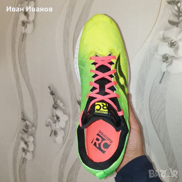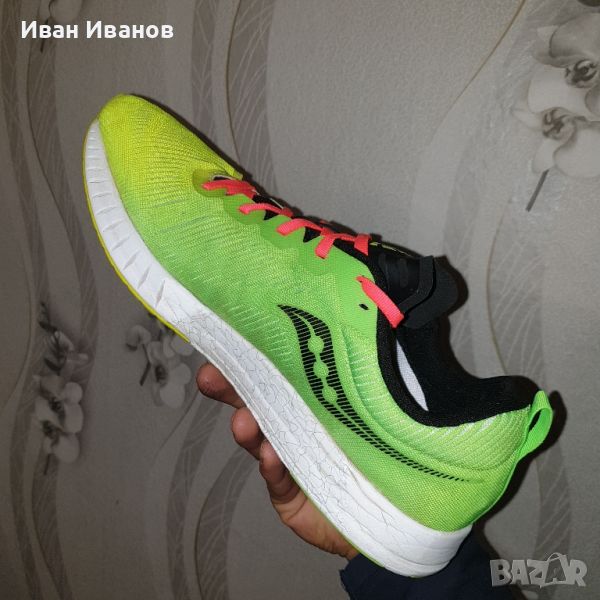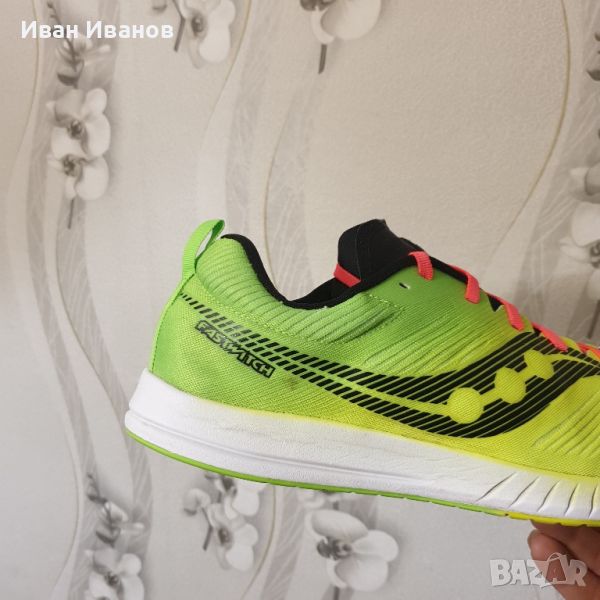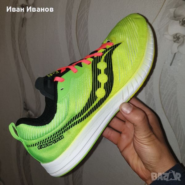 Saucony Fastwitch 9Много леки и удобни .Много малко използвани , Без забележки ,Страхотен цвят , красиви и модерни.Цена по магазините около 250 лева Маратонки за шосейни състезания, които осигуряват чувствително омекотяване. Бъдете финиширащият, който къса лентата. Бързият Fastwitch 9 има всички инструменти, за да помогне на бегачите да ускорят и да го ритнат на следващата предавка. Тази бегачка е лека и бърза, осигуряваща чувствително омекотяване с леко насочване.Маратонките Saucony Fastwitch 9 Future са перфектният избор за бегачи, които търсят обувка с висока производителност. Проектирани от Saucony, тези маратонки разполагат с иновативна технология за подобряване на скоростта и поддръжката. Елегантният и модерен дизайн, съчетан с издръжливата конструкция, прави тези маратонки идеалният избор за всеки спортист. Надградете играта си за бягане с маратонките Saucony Fastwitch 9 Future. Fastwitch 9 е готов да ви отведе от това да сте просто „завършващ“ до това да завършите първи. Леката междинна подметка SSL и външната подметка PWRTRAC ще ви осигурят страхотна възглавница и сцепление, докато инженерната мрежеста горна част осигурява дишащо прилягане. Време е да се завържете, да увеличите темпото и да спечелите състезанието в изцяло новия Fastwitch 9.ПрегледСъздадена горна част от въздушна мрежа, която комбинира дишане и поддръжкаSSL EVA формована междинна подметка за лека реакцияPWRTRAC Гумена подметка осигурява 3 пъти по-добро сцепление от стандартната гума Бъдете финиширащият, който къса лентата. Бързият Fastwitch 9 има всички инструменти, за да помогне на бегачите да ускорят и да го ритнат на следващата предавка. Тази бегачка е лека и бърза, осигуряваща чувствително омекотяване с леко насочване.Характеристики и предимства: Създадена горна част от въздушна мрежа, която комбинира дишане и поддръжкаSSL EVA формована междинна подметка за лека реакцияPWRTRAC Гумена подметка осигурява 3 пъти по-добро сцепление от стандартната гумаОфсет: 4 ммТегло: 6,7 унции