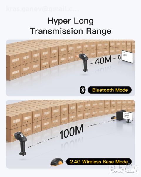 Wide Compatibility Pro 8 поддържа както Bluetooth, така и 2.4G връзки, подходящи за Windows, Mac OS, Linux, Android и iOS системи. Три вида обратна връзка: светлина, вибрация и звук. Подходящ за различни сценарии като складове, логистични центрове и супермаркети. Можете също така лесно да настроите скенера чрез приложението или екрана.