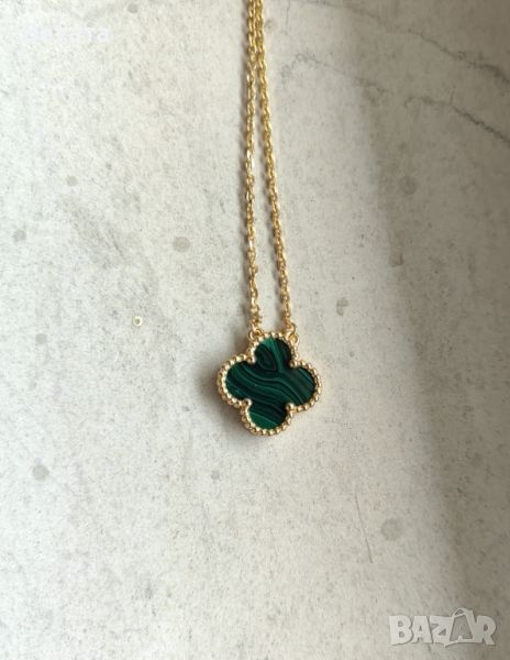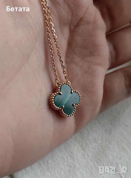 Дамско колие на Van Cleef & Arpels с детелинка изработена от зелен малахит