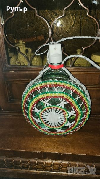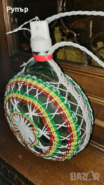 Стара неупотребявана Българска бъклица с красива цветна уплетка подходяща за свадби механи и ползване от ранния Соц.