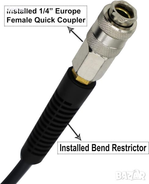 Този издръжлив въздушен маркуч включва смес от каучук и PVC за отлична издръжливост, лека конструкция и устойчивост на абразия, осигурявайки надеждна работа при всякакви метеорологични условия. Оборудван с 1/4” BSR мъжки фитинги и бърз съединител, той предлага лесно свързване към въздушни компресори и инструменти без необходимост от отделни фитинги. И двата края са монтирани с ограничители на огъване, за да се намали прегъването и да се удължи живота на маркуча. С 6,5 mm ID X 12 mm OD и 10 m дължина, той осигурява до 300 PSI максимално работно налягане и може да издържи моментни налягания до 1200 PSI.