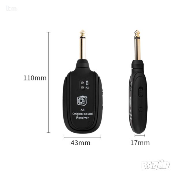 A8 UHF Безжична система Аудио предавател Приемник за китара Пикап Бас цигулка Части Вградена акумулаторна батерия
