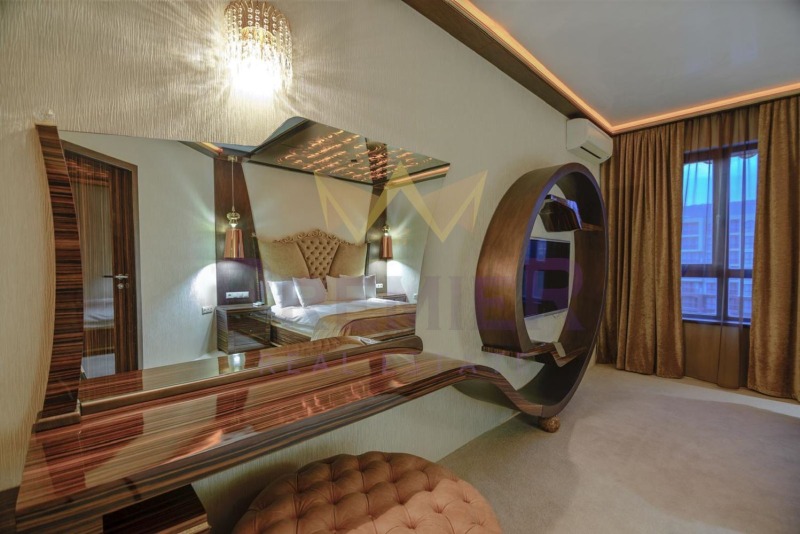 Имоти Премиер представляет вашему вниманию трехкомнатную современно меблированную и полностью оборудованную квартиру в курортном поселке Златни Пясы. Квартира расположена на пятом этаже кирпичного здания с очень ухоженными общими зонами. В собственности имеется следующее распределение: прихожая, большая гостиная с кухонным уголком, две спальни с ванными комнатами и туалетами, отдельный туалет и терраса с уникальным видом на море. Квартира находится в закрытом комплексе с охраной и контролируемым доступом на первой линии, в нескольких метрах от пляжа!