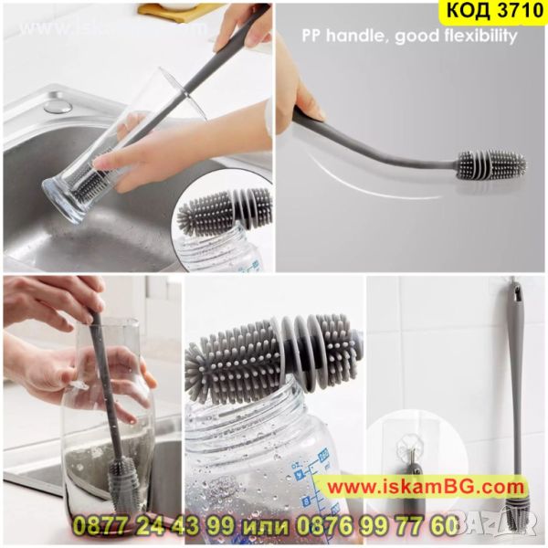 Четка за миене на чаши и бутилки изработена от силикон - КОД 3710