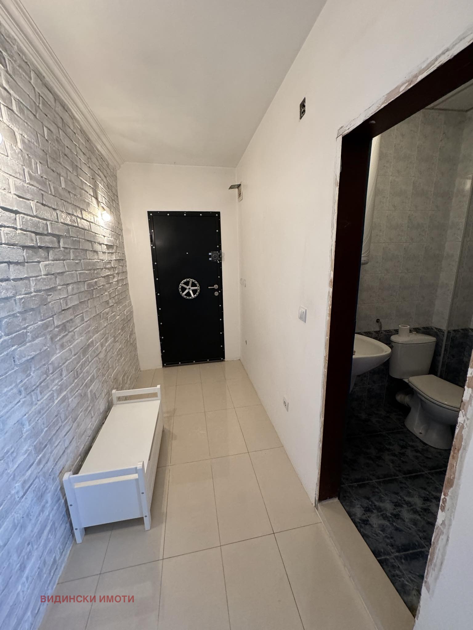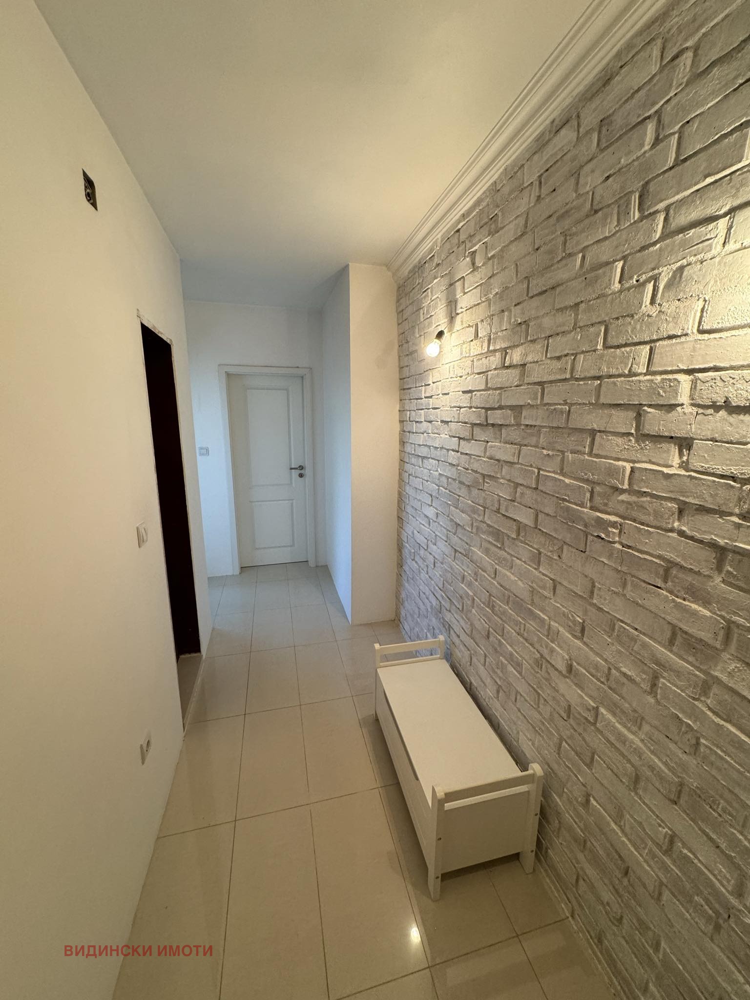 * коридор - пода е теракот, стените с декоративни тухли, шпаклован и боядисан с латекс