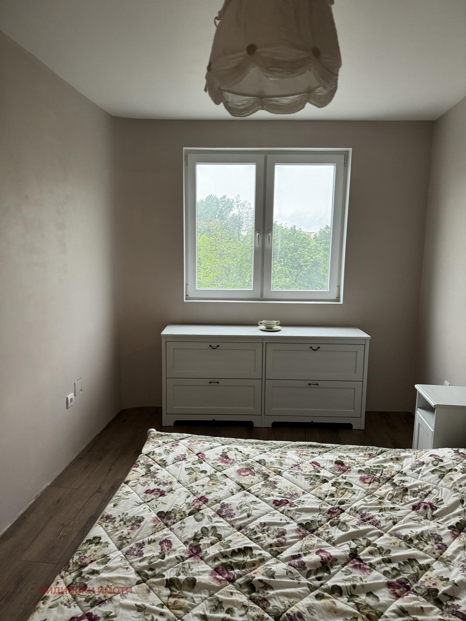 * спалня - пода е ламинат, стените шпакловани и боядисани с латекс + дрешник