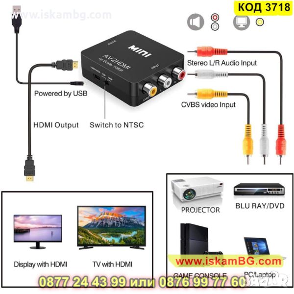 Аудио и видео конвертор AV към HDMI - КОД 3718