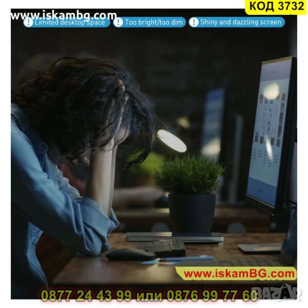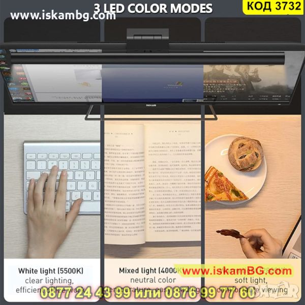 LED лампата Baseus i-wok за монтаж на монитор е чудесен уред, с който ще сложите край на взирането в монитора, когато работите до късно вечер и светлината не Ви е достатъчна. Инсталирането й е лесно - директно на монитора Ви, а светлината й няма да заслепи очите Ви. Наподобява естествена светлина, благодарение на високия индекс на цветопредаване, който тази лампа притежава и няма да изкриви цвета на осветявания обект. Също така, яркостта на светлината се регулира и имате избор между 3 диапазона: - студена /бяла/ светлина 5500K - подходяща по време на работа; - неутрална светлина 4400К - подходяща за четене и топла /жълта/ светлина 2800К - подходяща за гледане на филми. Лед лампата за монитор се захранва с USB порт, позволяващ свързването й към телефон, компютър, като се поставя за няколко секунди върху екрана на монитор или лаптоп, като за това няма да са Ви нужни инструменти. Светлинният й поток се насочва директно върху масата под ъгъл от 45 градуса, а не върху екрана и предпазва очите от явяване на неприятни отблясъци. Лампата за монитор Baseus i-wok е висяща и използва асиметричен дизайн на източник на светлина, като по този начин се осветява работния плот, а не самия екран. Корпусът на лампата е с ъгъл на наклон, който осветява клавиатурата и документите пред екрана, като не излъчва синя светлина, защото има индекс на цветопредаване 80. Фиксирането на лампата става с помощта на спиралната пружинна структура, чиято гравитационна основа обещава стабилност при завъртане за регулиране на ъгъла на осветяване.