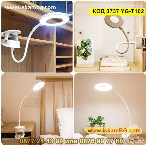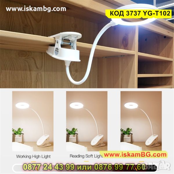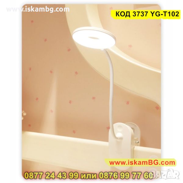 Адаптивна и комфортна LED лампа с гъвкаво рамо и щипка - КОД 3737 YG-T102