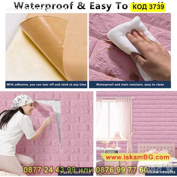 Начинът на поставяне е лесен - премахвате защитното хартиено фолио от задната страна и залепвате PVC панелите. Освен това Вие можете да ги залепите върху дърво, боядисаната стенна облицовка,тапети, керамични плочки, метално стъкло и други.