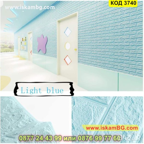 Цената включва 1 брой 3д тапет/панел в светло син цвят